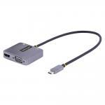 ・仕様 : ■ コネクタA:1x USB-C(DisplayPort対応オルタネートモード、24ピン)、1x USB-C (USB Power Delivery)■ コネクタB:1x HDMI [19ピン]、1x VGA [15ピン]、1x 3.5mmステレオミニ (3極、メス)■対応OS:OSに依存せず。ドライバ/ソフトウェア不要。■ アクティブ/パッシブ方式:アクティブ■ AV入力:USB-C■ AV出力:HDMI、VGA■ チップセット:VIA/VLI - VL103-Q4、ITE - IT6564FN■ ビデオのバージョン:HDMI 2.0b■最大アナログ解像度:1920 x 1200 @ 60 Hz (VGA)■最大デジタル解像度:3840 X 2160 @ 60 Hz (HDMI)■ワイド画面サポート:あり■ オーディオ仕様:HDMI(7.1chオーディオ)、アナログステレオ (2chオーディオ)■最大ケーブル長さ:HDMIディスプレイの場合、7m。VGAディスプレイの場合、30m。■ 動作温度:0℃?45℃■ 保存温度:-10℃?70℃■ 湿度:10%-85%RH■電力供給方法:USBバスパワー、ホストUSB-C電源アダプタ■ 色:グレー■ 製品重量:41 g ■ 製品幅:6.0 cm ■ 製品長さ:4.5 cm ■ 製品高さ:1.4 cm ■ 工場出荷時(パッケージ)重量:94 g■注意:(1) このアダプタは、MSTおよびデュアルエクステンドディスプレイには対応していません。(2) VGAとHDMIによる2画面の複製(ミラー)に対応
